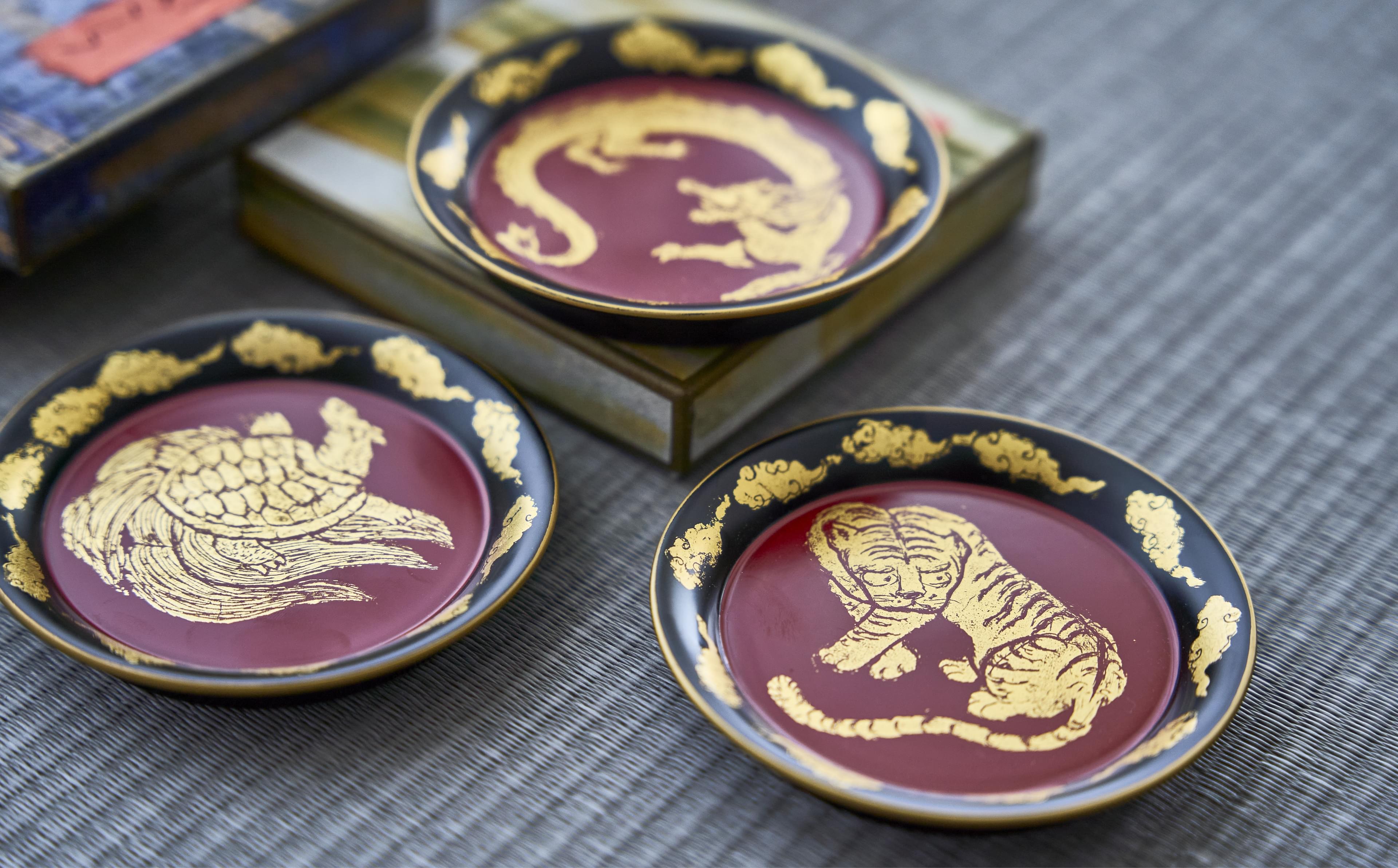 人間国宝の室瀬和美師が創設した工房「目白漆學舎」の講師から学ぶ、「ふふ 東京 銀座」だけの特別な時間。日本伝統の漆を使って金箔を使い、豆皿に吉祥の動物を描きます。制作した豆皿は体験の記念としてお持ち帰りくださいませ。