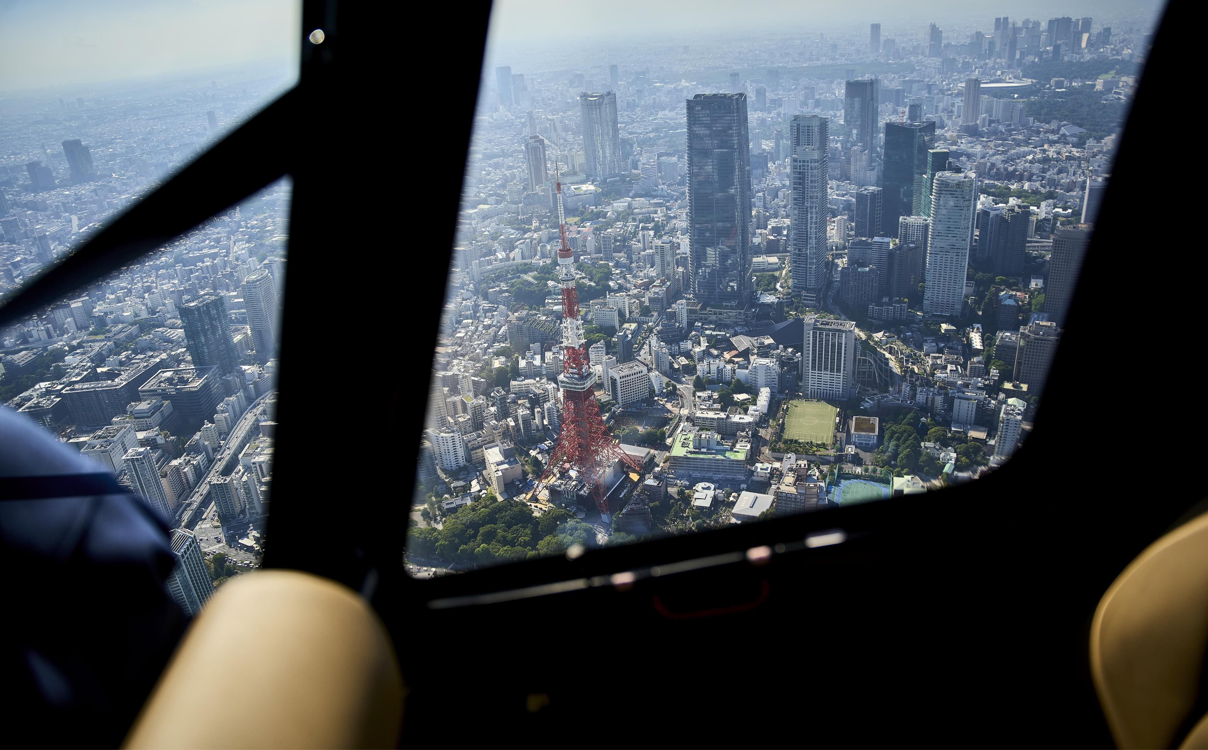 東京都内や富士山など東京から空を観光するヘリコプター遊覧プラン。大都会を見渡し、時間の移ろいで変わる景色は、非日常のひとときを味わうことができます。